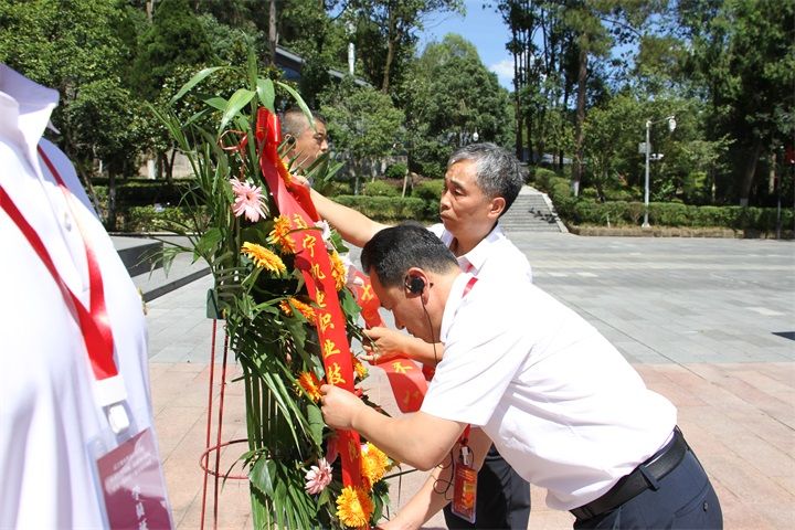 校長段振云、紀(jì)委書記沈犁在紅軍山烈士陵園敬獻(xiàn)花籃