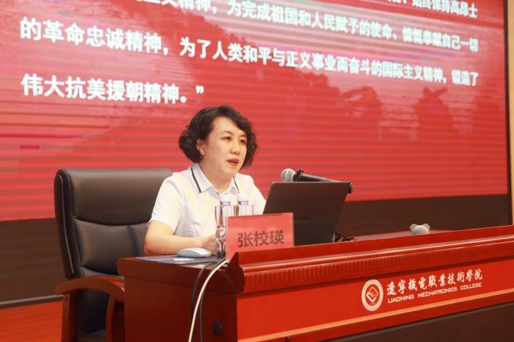 活動(dòng)邀請(qǐng)遼寧省國(guó)防教育講師團(tuán)成員、抗美援朝紀(jì)念館副館長(zhǎng)張校瑛作“依托抗美援朝紅色資源 傳承偉大抗美援朝精神”專題講座。張校瑛從朝鮮內(nèi)戰(zhàn)爆發(fā)的原因、中共中央決策出兵的背景、抗美援朝戰(zhàn)爭(zhēng)的基本過(guò)程、抗美援朝戰(zhàn)爭(zhēng)的偉大勝利、抗美援朝戰(zhàn)爭(zhēng)的意義和影響等方面對(duì)抗美援朝戰(zhàn)爭(zhēng)進(jìn)行了深入淺出的講解,為師生們帶來(lái)了一堂難忘的國(guó)防教育思政課。