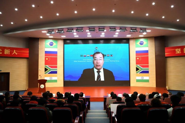 金磚國家工商理事會技能發(fā)展、應用技術(shù)與創(chuàng)新中方工作組組長,一帶一路暨金磚國家技能發(fā)展國際聯(lián)盟理事長劉振英作視頻致辭。他表示,“一帶一路”倡議為各國間的合作與發(fā)展帶來了前所未有的機遇,金磚國家的合作機制也在不斷深化拓展。他感謝各位領(lǐng)導、各位專家以及社會各界同仁對金磚國家職業(yè)技能大賽的關(guān)注和支持,預祝各參賽隊取得理想成績,并祝賽項取得圓滿成功。