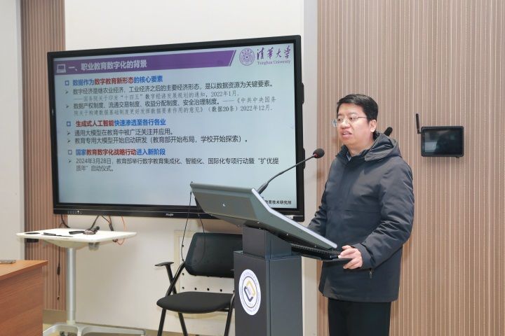 近日,學校干部教師素質能力提升培訓會在B112會議室召開,校長段振云主持,特邀清華大學教育研究院教育技術研究所所長、博士周潛教授作題為《縱深推進職業(yè)教育數字化戰(zhàn)略行動》的專題培訓。