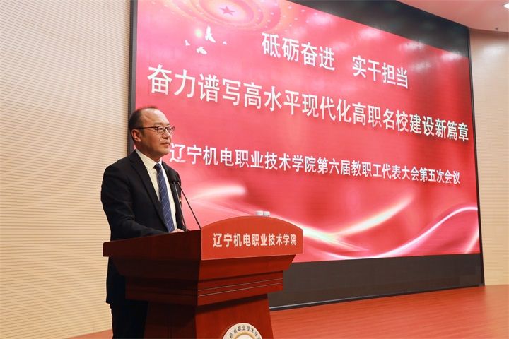 黨委副書記、校長(zhǎng)段振云以“砥礪奮進(jìn) 實(shí)干擔(dān)當(dāng) 奮力譜寫高水平現(xiàn)代化高職名校建設(shè)新篇章”為題作六屆五次教代會(huì)學(xué)校工作報(bào)告。報(bào)告指出,上一年度,學(xué)校在省委、省政府和省委教育工委、省教育廳的正確指導(dǎo)下,在學(xué)校黨委的堅(jiān)強(qiáng)領(lǐng)導(dǎo)下,用高質(zhì)量黨建引領(lǐng)學(xué)校高質(zhì)量發(fā)展,為我省全面振興新突破三年行動(dòng)攻堅(jiān)之年攻堅(jiān)之戰(zhàn)貢獻(xiàn)了機(jī)電力量。