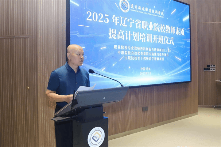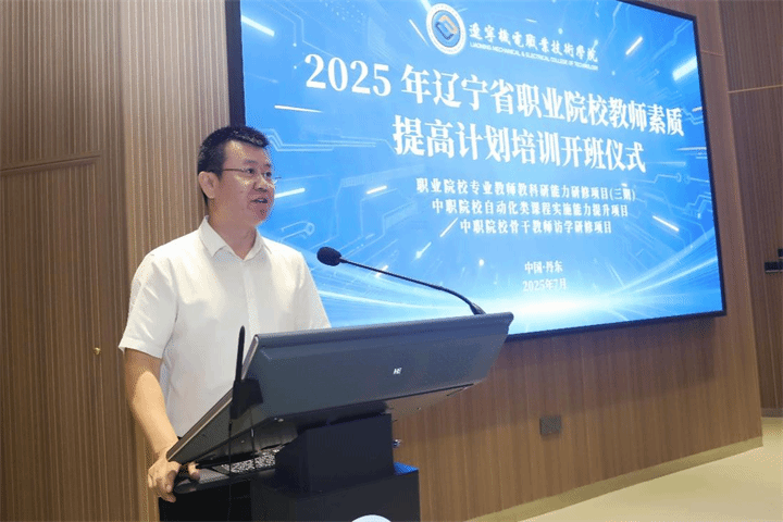 7月7日,2025年遼寧省職業(yè)院校教師素質(zhì)提高計(jì)劃“職業(yè)院校專業(yè)教師教科研能力研修、中職院校自動(dòng)化類課程實(shí)施能力提升、中職院校骨干教師訪學(xué)研修”三個(gè)項(xiàng)目開(kāi)班儀式在我校舉行,來(lái)自省內(nèi)近百名職業(yè)院校骨干教師參加會(huì)議。副校長(zhǎng)王俊出席開(kāi)班式并講話,儀式由培訓(xùn)學(xué)院院長(zhǎng)趙東明主持。