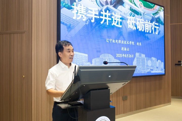 段振云代表我校對韓國海一行表示歡迎,并從加強黨的建設(shè)、堅持立德樹人、深化產(chǎn)教融合、增強社會服務(wù)等方面,詳細介紹了我校的辦學(xué)情況。希望兩校攜起手來,全面構(gòu)建高層次開放格局,在人才培養(yǎng)、技能培訓(xùn)、學(xué)術(shù)交流等方面開展深度、務(wù)實的溝通協(xié)作,互鑒先進的教育理念和資源,為兩校的長遠發(fā)展注入新的活力。