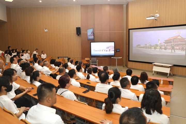 9時(shí)整,全體師生懷著崇敬與激動(dòng)的心情,同步收聽(tīng)收看紀(jì)念中國(guó)人民抗日戰(zhàn)爭(zhēng)暨世界反法西斯戰(zhàn)爭(zhēng)勝利 80 周年大會(huì)。直播過(guò)程中,各會(huì)場(chǎng)內(nèi)氣氛莊重肅穆。在場(chǎng)師生神情專注,認(rèn)真聆聽(tīng)習(xí)近平總書(shū)記在大會(huì)上發(fā)表的重要講話,共同回顧中國(guó)人民抗日戰(zhàn)爭(zhēng)的壯闊歷程,深刻感悟中國(guó)人民在抗日戰(zhàn)爭(zhēng)中展現(xiàn)出的崇高精神。當(dāng)看到受閱部隊(duì)整齊列隊(duì)、邁著鏗鏘步伐通過(guò)檢閱臺(tái)時(shí),現(xiàn)場(chǎng)不時(shí)響起陣陣掌聲,大家為展現(xiàn)出的國(guó)威軍威倍感自豪,更對(duì)來(lái)之不易的和平生活倍加珍視。直播結(jié)束后,在原志愿軍第50軍文藝戰(zhàn)士徐菁的指揮下,主會(huì)場(chǎng)師生齊唱《歌唱祖國(guó)》。