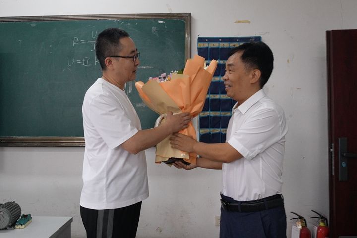 上午8時(shí),學(xué)校領(lǐng)導(dǎo)班子全體成員及黨委委員走進(jìn)課堂,為從教30年以上的專業(yè)教師敬獻(xiàn)鮮花,表達(dá)敬意。