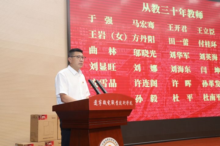 下午2時(shí),學(xué)校在儀表園校區(qū)報(bào)告廳隆重召開“以教育家精神鑄魂強(qiáng)師 譜寫教育強(qiáng)國建設(shè)華章”教師節(jié)慶祝大會(huì)。中國聯(lián)通丹東分公司副總經(jīng)理林丹、中國銀行丹東分行副行長(zhǎng)楊冠華、丹東邊境經(jīng)濟(jì)合作區(qū)企業(yè)協(xié)會(huì)常務(wù)副會(huì)長(zhǎng)谷澤毅作為受邀嘉賓出席大會(huì)。學(xué)校領(lǐng)導(dǎo)班子全體成員出席大會(huì)。校長(zhǎng)段振云主持。