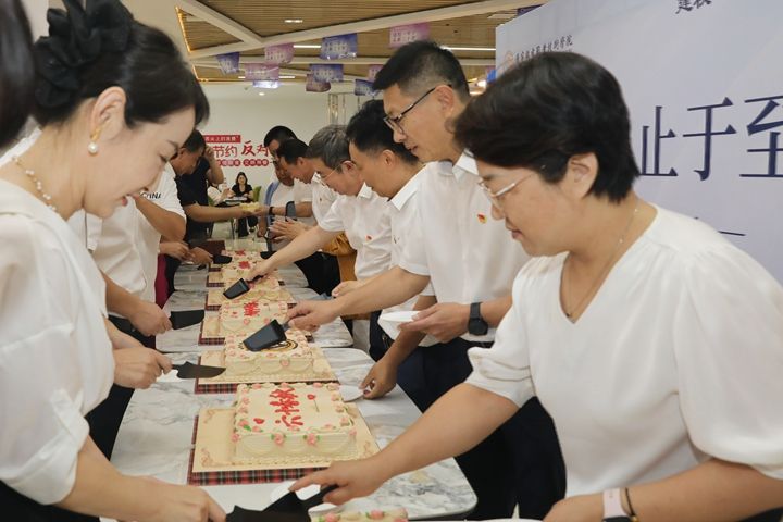 中午11時(shí)30分,學(xué)校為廣大教師提供了“教師節(jié)特餐”校領(lǐng)導(dǎo)與合作企業(yè)代表共同為全校教職工切分節(jié)日蛋糕。