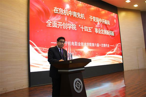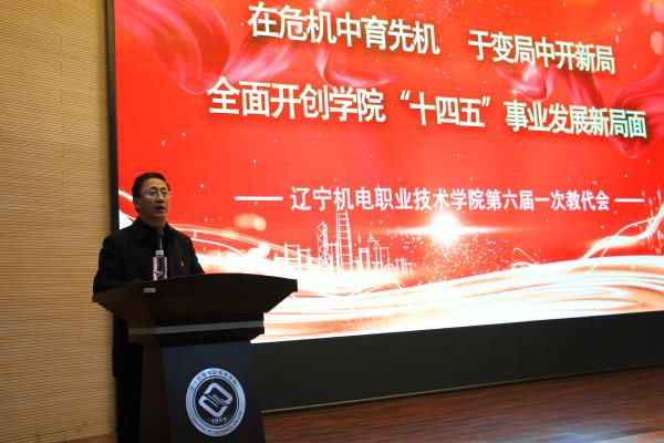在遼寧機(jī)電職業(yè)技術(shù)學(xué)院六屆一次教代會(huì)上,院長(zhǎng)于宏國(guó)作題為《在危機(jī)中育先機(jī)、于變局中開(kāi)新局,全面開(kāi)創(chuàng)學(xué)院“十四五”事業(yè)發(fā)展新局面》的學(xué)院工作報(bào)告。報(bào)告中,于宏國(guó)首先對(duì)學(xué)院在“十三五”期間及2020年的工作進(jìn)行了全面回顧和梳理。他指出,“十三五”時(shí)期,在學(xué)院黨委的正確領(lǐng)導(dǎo)下,經(jīng)過(guò)全院教職員工的共同努力,學(xué)校各項(xiàng)事業(yè)取得了新成績(jī)。2020年,全院教職員工面對(duì)艱巨繁重的職教改革創(chuàng)新任務(wù),積極應(yīng)對(duì)新冠肺炎疫情帶來(lái)的不利影響,有力推動(dòng)了學(xué)院各項(xiàng)事業(yè)的高質(zhì)量發(fā)展,取得了一批標(biāo)志性成果。
