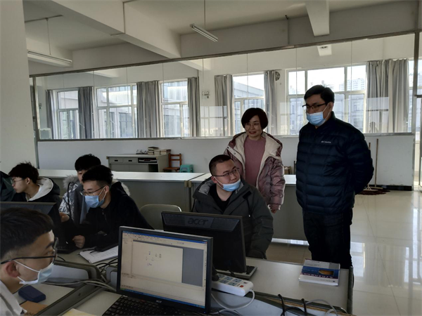 學(xué)院黨委書記王忠誠(chéng)(中)查看上課情況