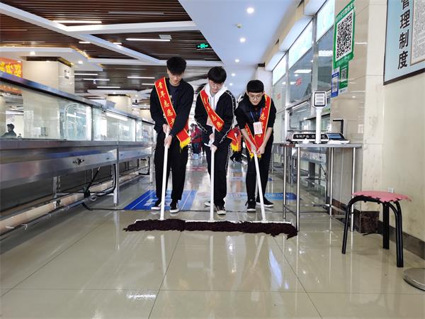 志愿者清理食堂地面