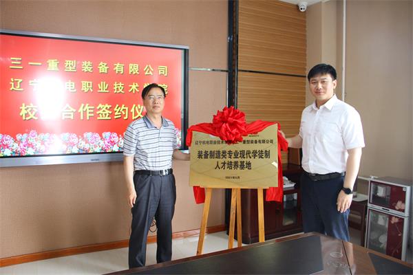 隨后,校企雙方簽訂校企合作協(xié)議,共同為“遼寧機(jī)電——三一重裝”裝備制造類(lèi)專(zhuān)業(yè)現(xiàn)代學(xué)徒制人才培養(yǎng)基地揭牌。