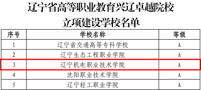 遼寧省高等職業(yè)教育興遼卓越院校立項(xiàng)建設(shè)學(xué)校名單