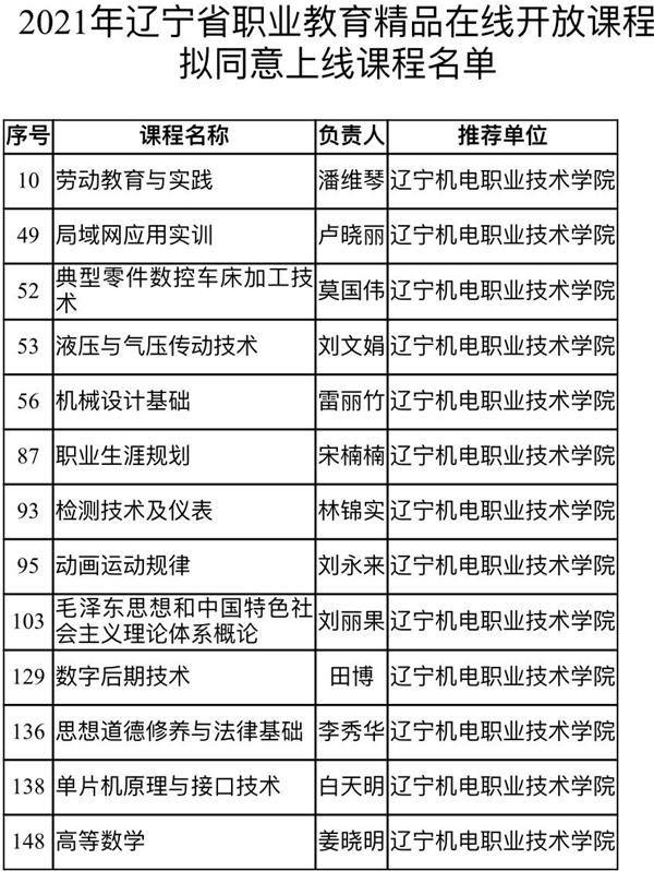 我院入選2021年遼寧省職業(yè)教育精品在線開(kāi)放課程擬同意上線課程名單