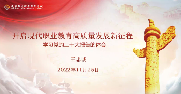 11月25日下午,遼寧機(jī)電職業(yè)技術(shù)學(xué)院學(xué)習(xí)貫徹黨的二十大精神宣講會(huì)暨黨委理論學(xué)習(xí)中心組(擴(kuò)大)學(xué)習(xí)會(huì)在行政中心會(huì)議室舉行。學(xué)校黨委書記王忠誠(chéng)主持會(huì)議,宣講黨的二十大精神,并對(duì)學(xué)習(xí)宣傳貫徹黨的二十大精神有關(guān)工作進(jìn)行動(dòng)員部署。