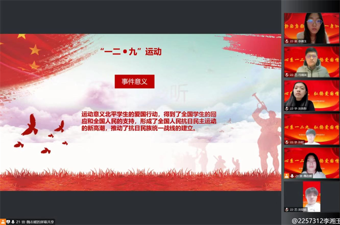 為紀念“一二·九”愛國運動,弘揚愛國主義精神,深入學習貫徹黨的二十大精神,12月9日我院在線上舉辦了“心系一二·九 弘揚愛國情”主題觀影談心得體會評比活動。