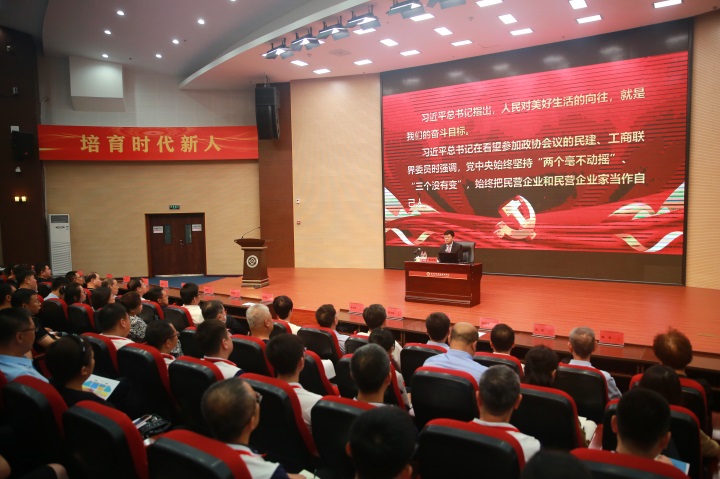學(xué)校300余名教職工和80名學(xué)生干部在現(xiàn)場(chǎng)聆聽(tīng)報(bào)告會(huì)。