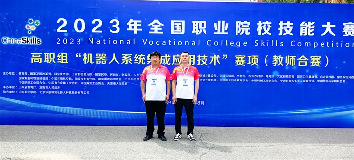 2023年全國(guó)職業(yè)院校技能大賽高職組“機(jī)器人系統(tǒng)集成應(yīng)用技術(shù)”賽項(xiàng)學(xué)生賽和教師賽于8月18至24日在山東省濟(jì)南市舉辦。我校自控系“機(jī)電一體化技術(shù)”專業(yè)學(xué)生任峻瑋、徐建洪組成的參賽隊(duì)在教師郭海林的指導(dǎo)下榮獲學(xué)生賽三等獎(jiǎng);我校自控系教師郭海林、洪亮組成的參賽隊(duì)榮獲教師賽三等獎(jiǎng)。