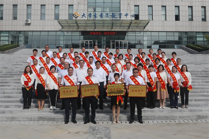 學(xué)校領(lǐng)導(dǎo)與受表彰集體代表、教工合影留念