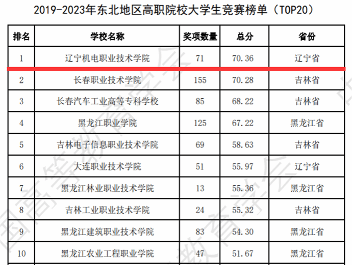 近日,中國高等教育學(xué)會高校競賽評估與管理體系研究專家工作組發(fā)布《2023全國普通高校大學(xué)生競賽分析報告》,我校獲“2019-2023年東北地區(qū)高職院校大學(xué)生競賽榜單”第一名。
