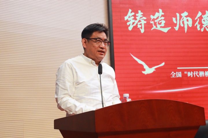 為全面提升學校思想政治工作質(zhì)量,進一步落實立德樹人根本任務,以榜樣引領強化思政建設,6月11日,學校特別邀請“時代楷?!薄白蠲缞^斗者”“全國道德模范”“全國高校輔導員年度人物”曲建武教授來校作“鑄造師德師魂 矢志為黨育人”專題報告。黨委書記于宏國主持報告會。