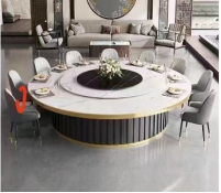 1 | 圓餐桌1 | ★餐桌尺寸:直徑3000mm*高720mm;轉(zhuǎn)盤尺寸直徑1500mm;桌面材質(zhì):直徑3000mm巖板壓鐵鍍金邊,中間轉(zhuǎn)盤巖板壓鐵鍍金邊以及底圈,桌芯轉(zhuǎn)盤鑲嵌3個(gè)功率2500w隱形電磁爐,巖板厚度120mm;底座尺寸:壁厚1.0鐵制桶形底座,尺寸直徑1500mm不銹鋼包邊以及底圈,內(nèi)部鋼架結(jié)構(gòu),優(yōu)質(zhì)電機(jī),電動(dòng)轉(zhuǎn)盤,遙控控制。 |